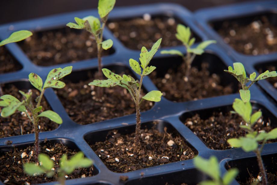 Plants et semis de tomate cerise planté recement, parfait pour repiquage